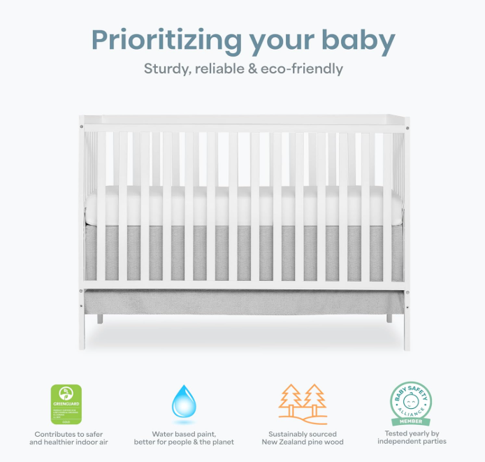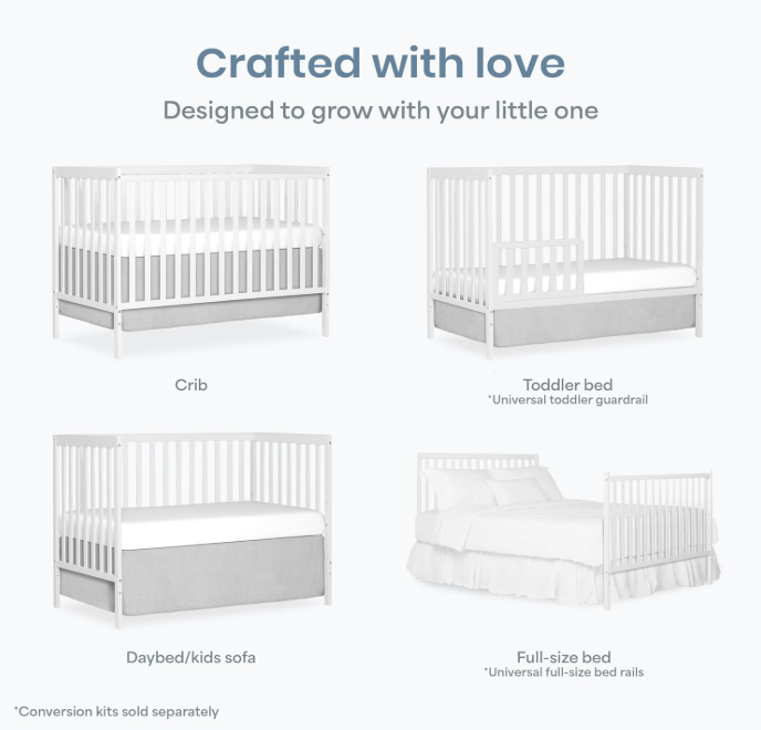 This 5-in-1 convertible baby crib is designed to grow with your child from infancy to toddler years.